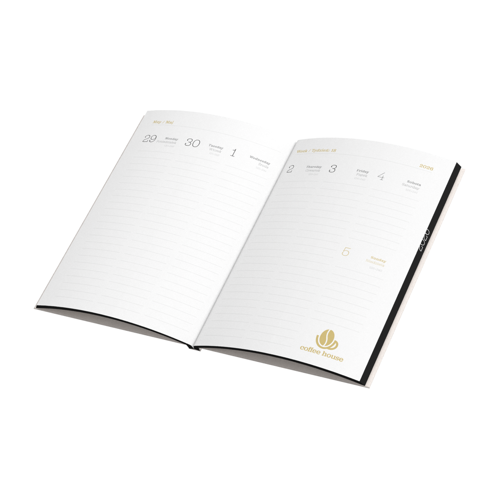 Kalendarz książkowy MN11-CAL-COFFEE w miękkiej okładce z papieru to funkcjonalny wybór dla każdego, kto ceni sobie połączenie estetyki z praktycznością. Dzięki pełnej personalizacji, każdy element tego kalendarza może być zaprojektowany według indywidualnych potrzeb marki.