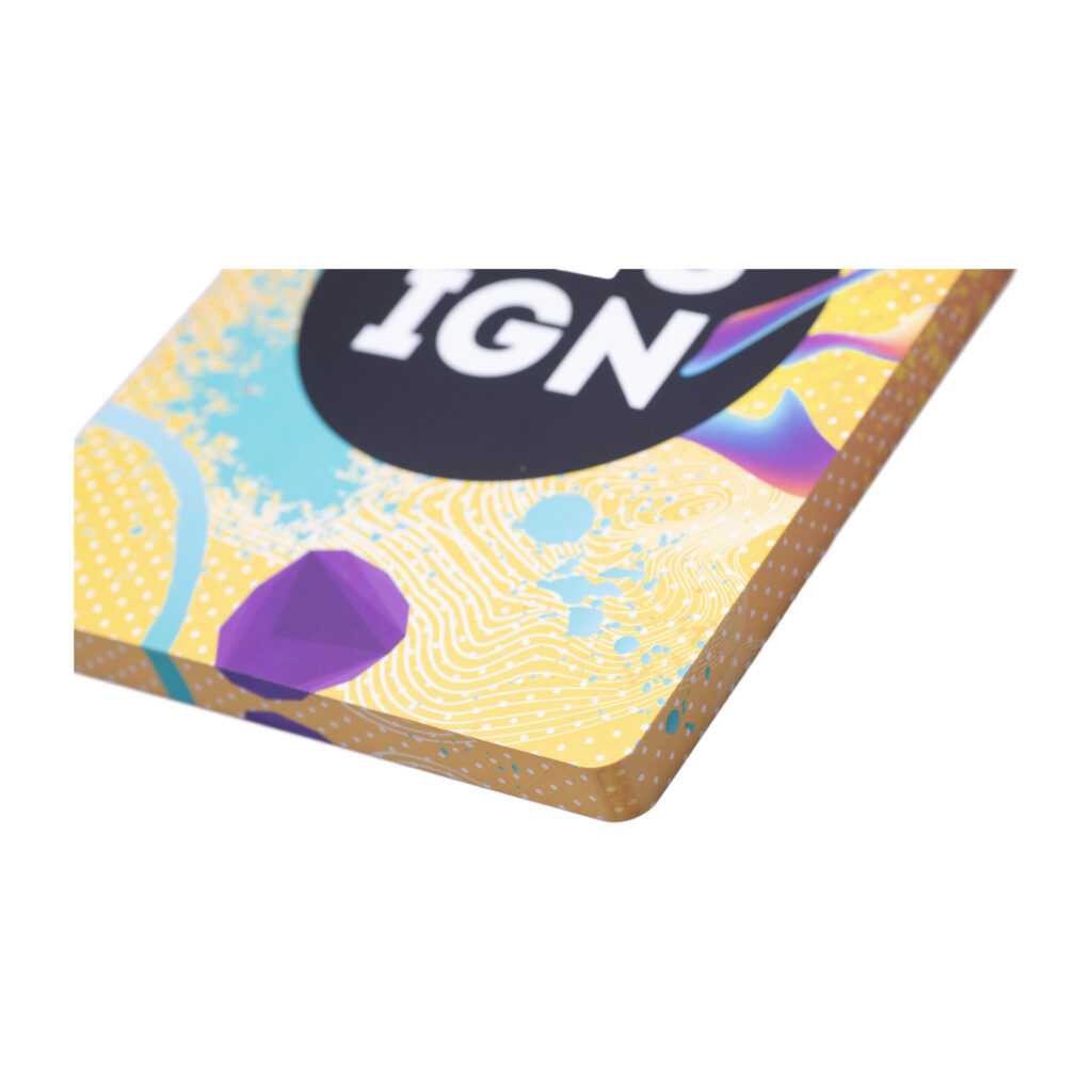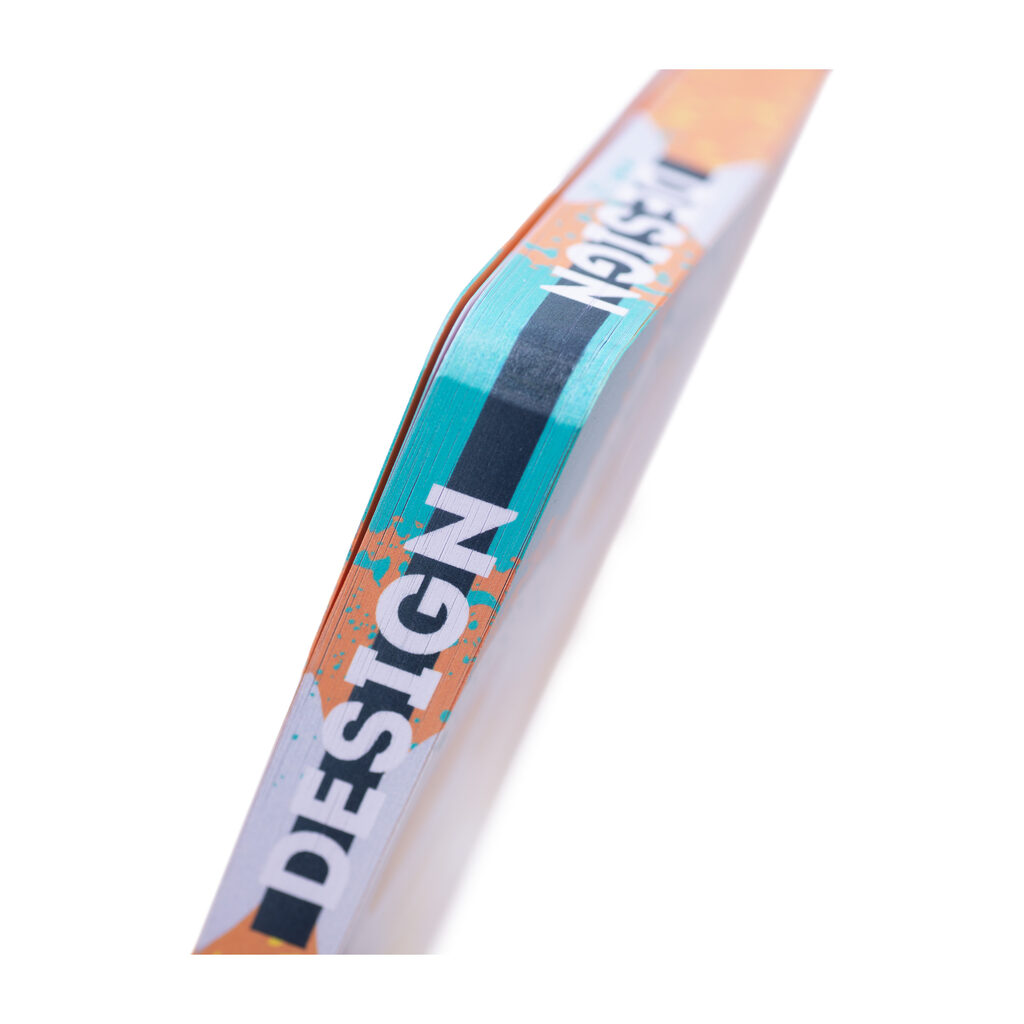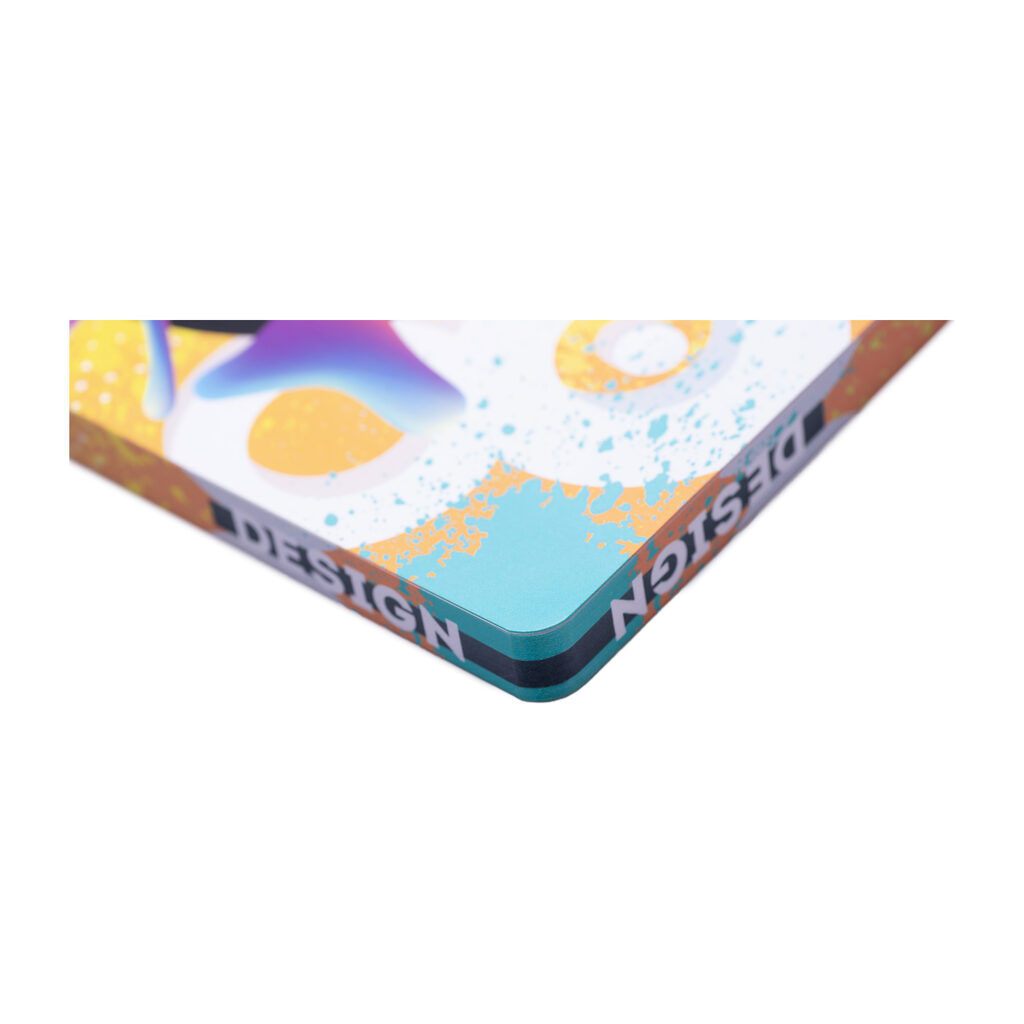Jedną z najbardziej atrakcyjnych opcji jest możliwość cyfrowego zadruku trzech krawędzi notesu. Dzięki temu, że wielkość okładki i bloku notesu jest taka sama, kreatywny grafik może stworzyć projekt, który płynnie przechodzi między okładkami, a zadrukowane krawędzie dodają notesowi prestiżu i elegancji. Ta opcja sprawia, że prosty i standardowy notes MN11 zyskuje luksusowy wygląd, pozostając jednocześnie w korzystnym budżecie dla reklamodawcy.
