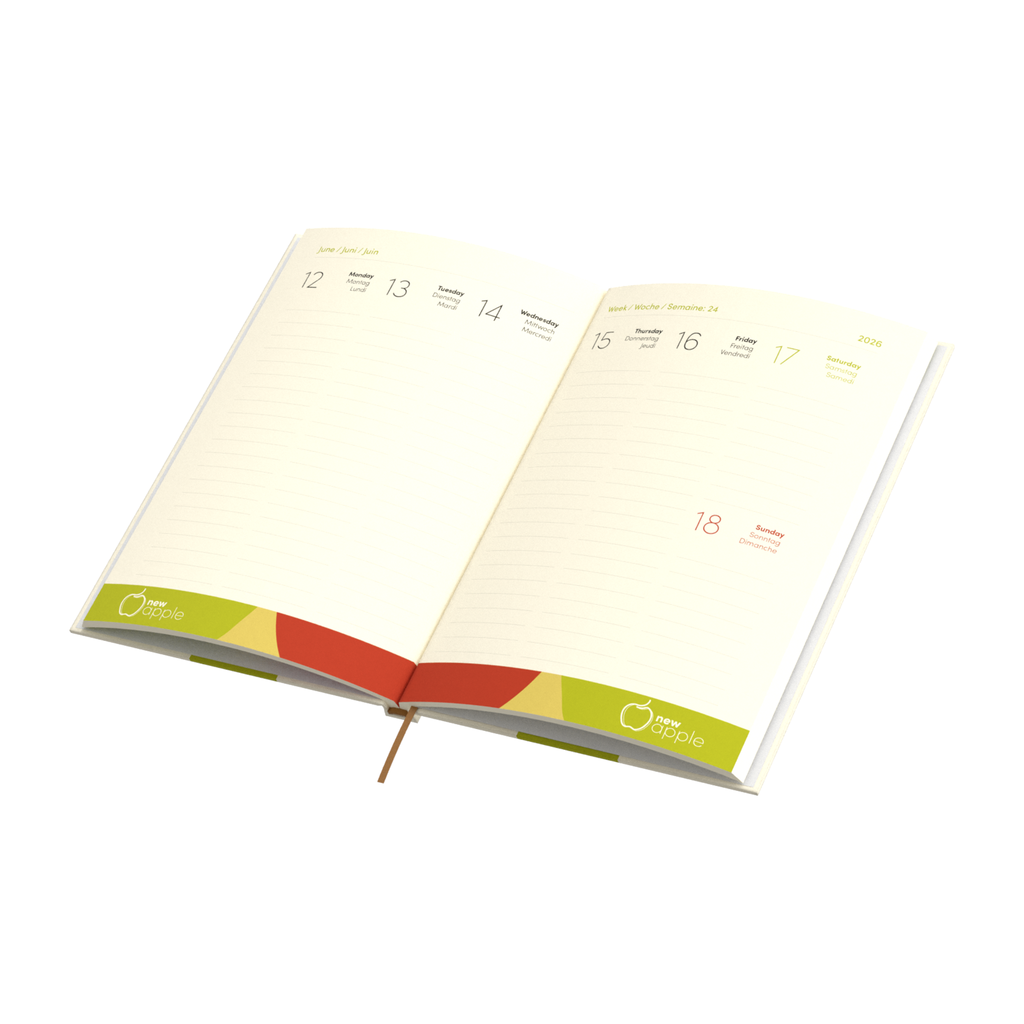 Kalendarz książkowy MN31-CAL-NEWAPPLE to doskonały wybór dla firm, które chcą łączyć elegancję z funkcjonalnością, oferując swoim klientom lub pracownikom prestiżowy i ekologiczny produkt.