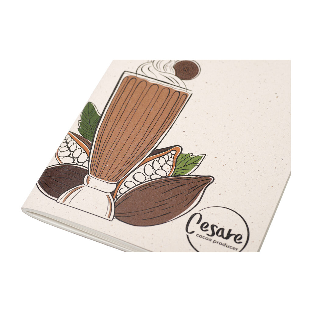 Okładki notesów MN41 wykonane są między innymi z papierów z serii ORGANIC SPIRIT, które powstają z połączenia celulozy z odpadami roślinnymi, takimi jak migdały, wiśnie, kakao, kawa, orzech kokosowy, orzech laskowy, kiwi, lawenda i oliwki. Papiery te zawierają również 40% celulozy z recyklingu, co czyni je biodegradowalnymi i w pełni nadającymi się do recyklingu. Każdy z tych papierów ma swój unikalny kolor i fakturę, co dodaje notesom naturalny i stylowy wygląd. Na wszystkich z tych papierów możemy umieścić personalizowany druk lub tłoczenie, co dodatkowo podkreśla indywidualny charakter każdego notesu.