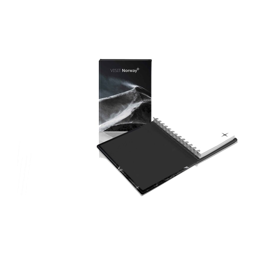 Twarda okładka, otwierająca się tradycyjnie na bok, chroni notes i nadaje mu estetyczny wygląd. Indywidualny druk można umieścić zarówno na okładce, jak i na kartkach notesu, co czyni ten produkt doskonałym narzędziem promocyjnym.