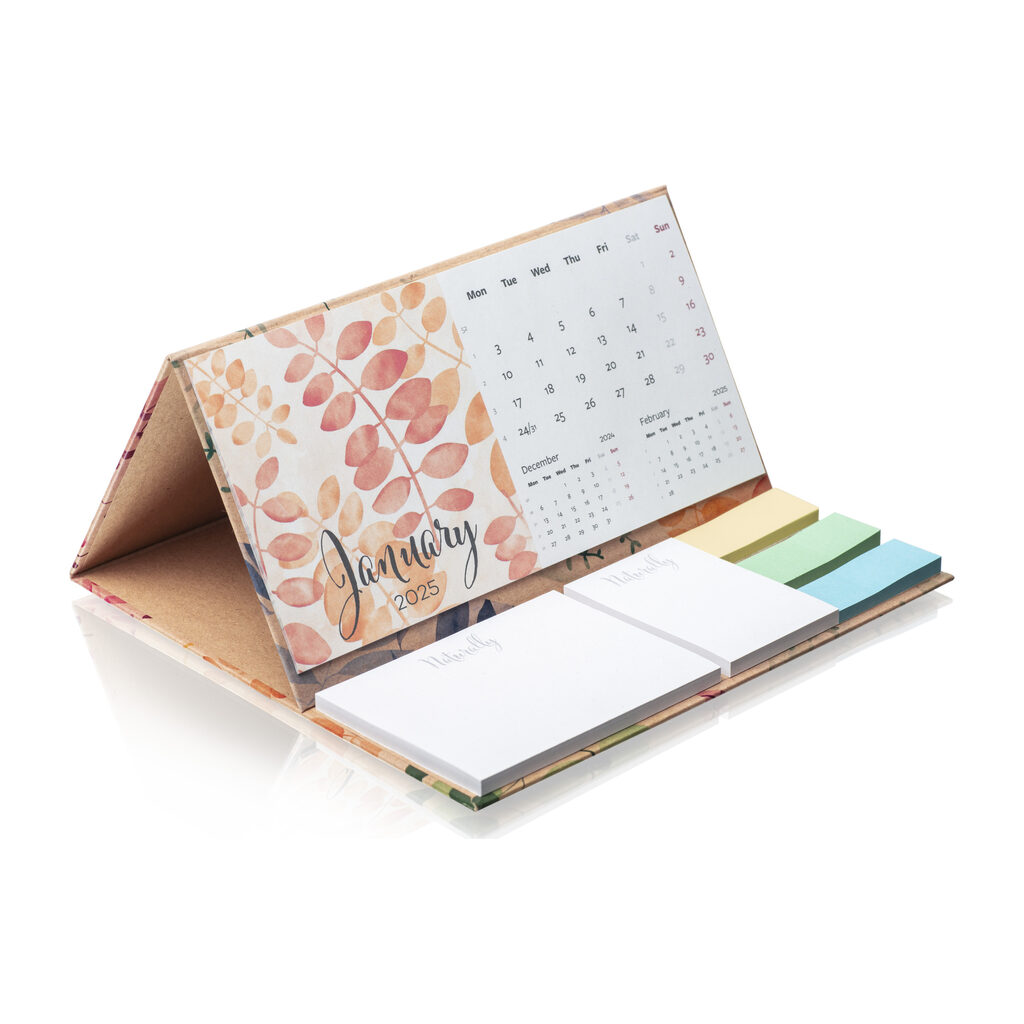 W tej wersji kalendarza twarda podstawa wykonana jest z ekologicznego papieru Kraft, który nadaje produktowi naturalny i surowy wygląd. Notesy samoprzylepne są wykonane z białego papieru pochodzącego w 100% z recyklingu, a kolorowe papierowe znaczniki indeksujące również powstają z materiałów z recyklingu. Dodatkowo, papier użyty do wykonania kartek kalendarium jest również w pełni ekologiczny.