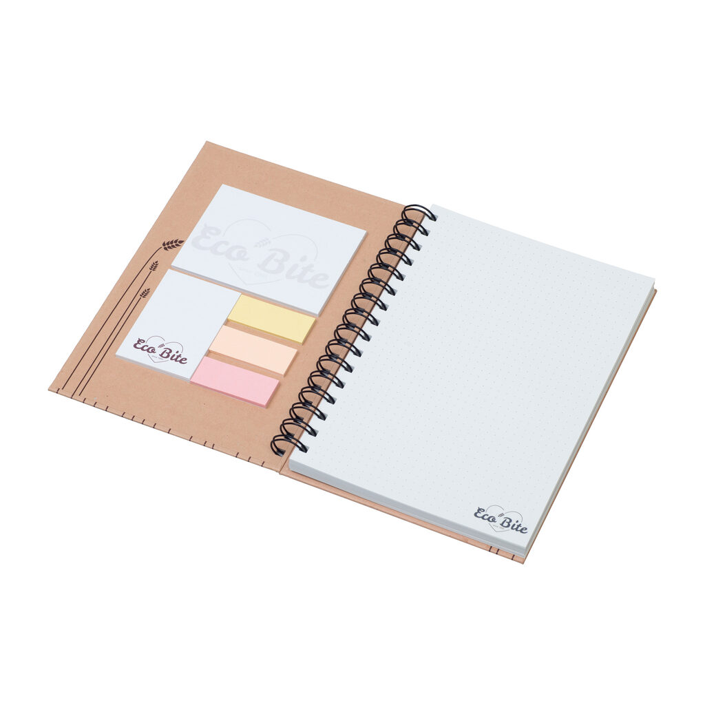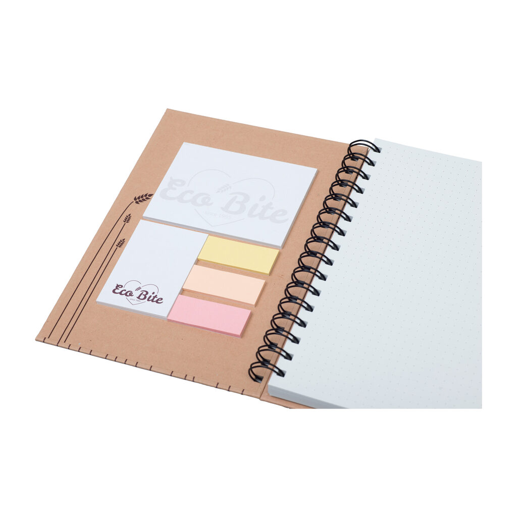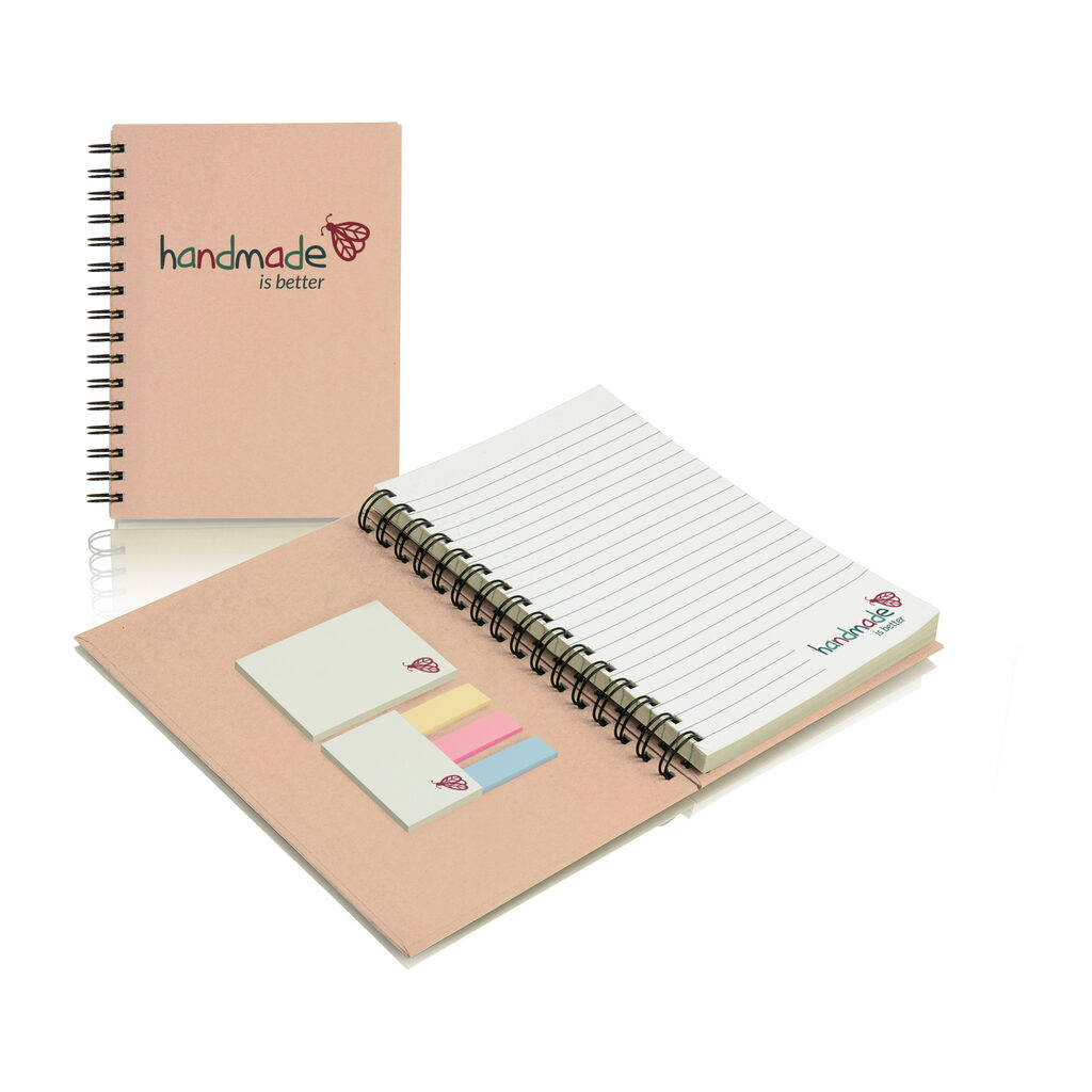 Model PM365-KRAFT to ekologiczna wersja zestawu notesów na spirali, stworzona z myślą o firmach dbających o środowisko. W tej opcji okładka wykonana jest z papieru Kraft, który charakteryzuje się naturalnym, surowym wyglądem oraz wysoką trwałością. Notes na spirali, notesy samoprzylepne oraz papierowe znaczniki indeksujące wykonane są z papieru pochodzącego w 100% z recyklingu.
